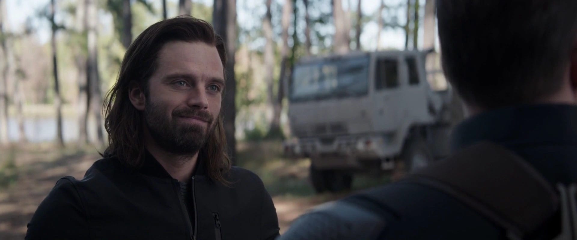 After the Wakanda Jesus look, this was such a breath of fresh air. And unlike the other Short Haired Bucky Looks, he has scruff in this one. That really elevates it. I appreciate that Bucky’s trying something new and expressing a dramatic life change by cutting off all his hair.
